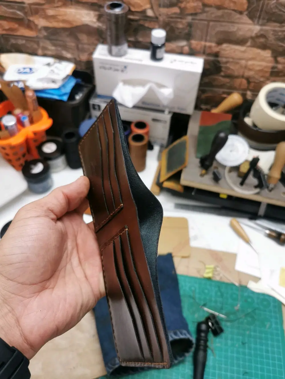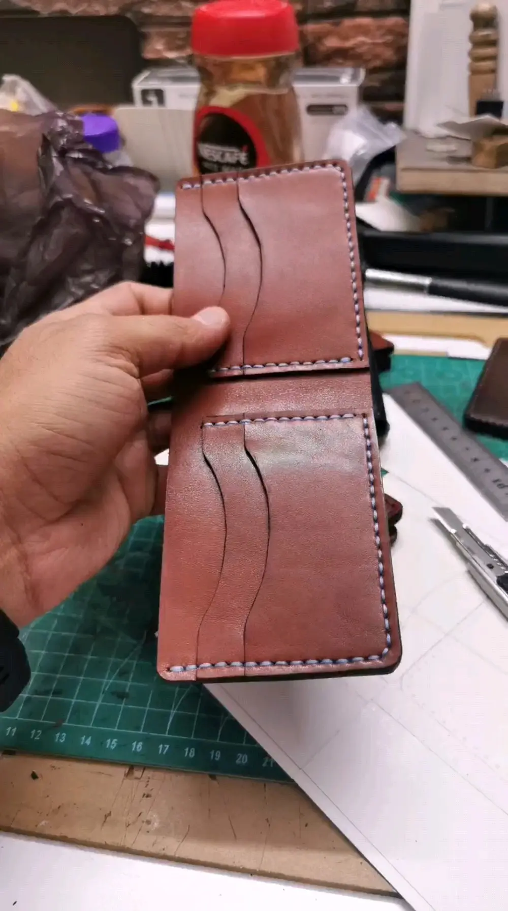 محافظ جلد طبيعي صناعه وخياطه يدويه بالكامل
