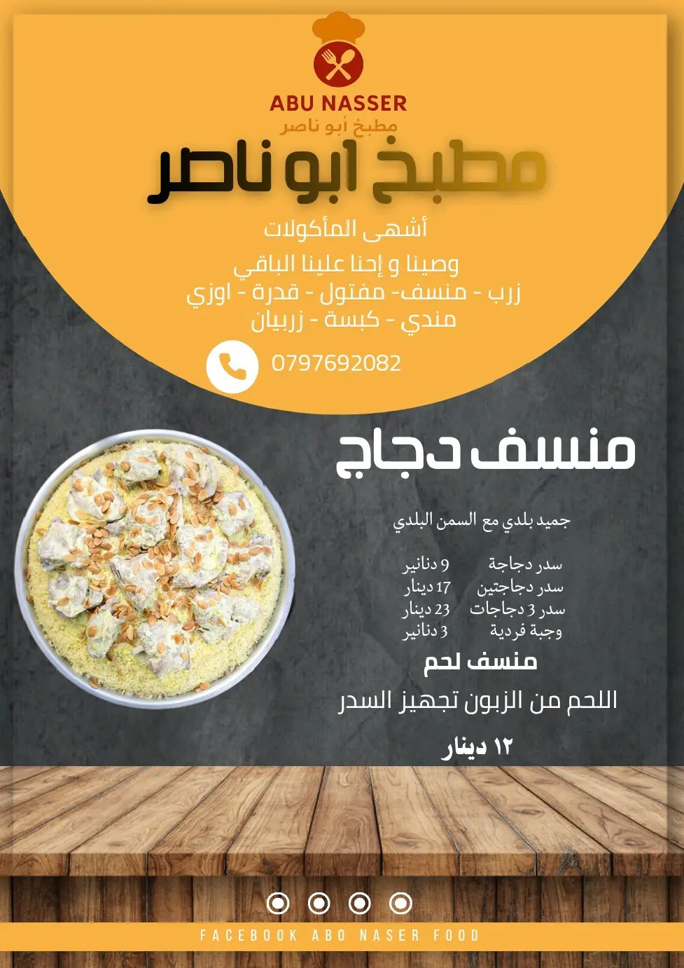 و يوجد وجبات منسف و مفتول